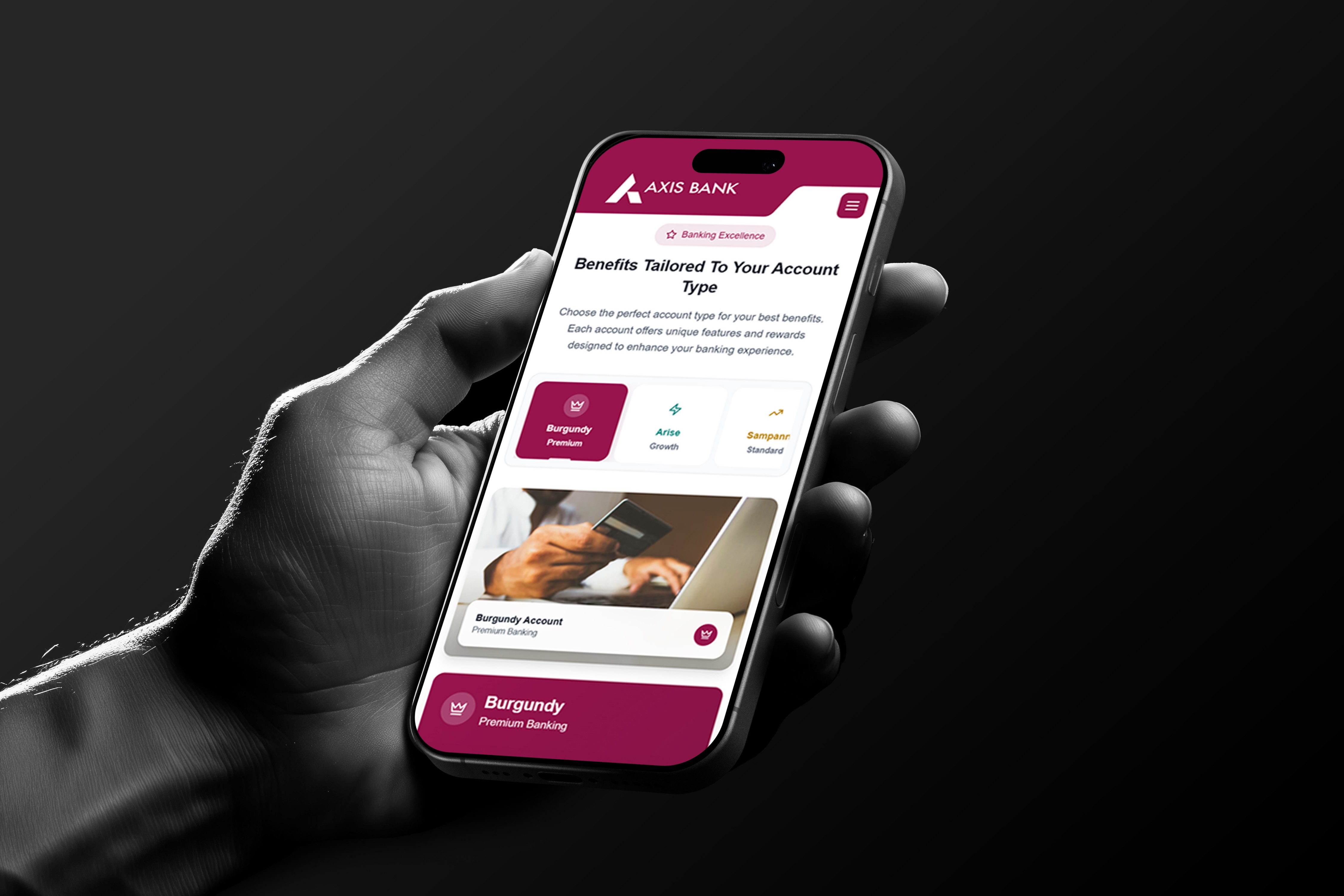 Axis Bank initiated a strategic project to create a unified digital hub for its Savings Account customers. The platform was designed to be hyper-personalized, catering to six distinct account segments (e.g., Burgundy, Prestige) and ten diverse user personas (e.g., Doctors, Rural Mass).
